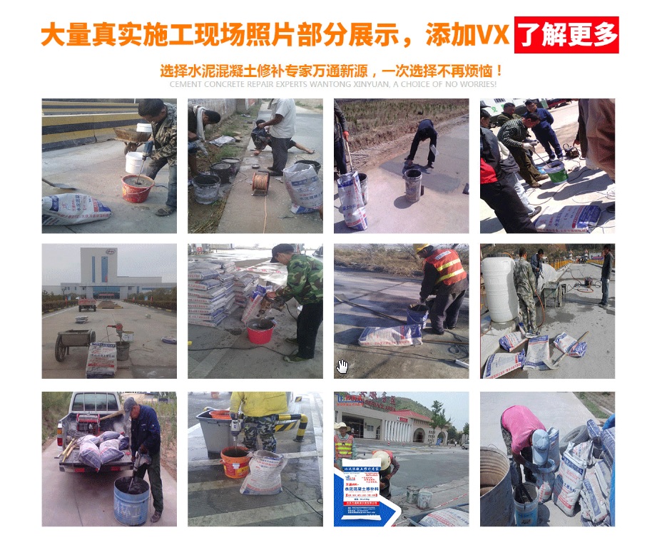 大慶萬通新源科技有限公司獨有的混凝土路面高強速補料,是水泥混凝土路面病害修復的好材料。疲勞、凍融循環(huán)、彎曲壓力、滲水和基層破壞等原因都會引起水泥路面的破損,從而帶來高昂的維護費用。與以往的剛性修補方法不同,混凝土水泥路面維修速補膠提供了一種獨特的柔性修補產(chǎn)品和技術,高柔性、高抗拉性,可跨伸縮縫施工和高抗壓性使得混凝土快補產(chǎn)品為水泥混凝土路面提供了******性的修補。傳統(tǒng)的剛性修補方案,如環(huán)氧砂漿和快干水泥產(chǎn)品,由于其自身的粘結失效,抗疲勞性低以及與原路面不同的伸縮系數(shù),修補面會在短時間內(nèi)失效或產(chǎn)生新的裂縫,需要反復修補,有效期短且費用高昂。大慶萬通新源科技有限公司的混凝土水泥路面維修速補膠可以隨原路面一起伸縮,移動,從而避免了粘結失效和產(chǎn)生新裂縫。萬通快補產(chǎn)品優(yōu)異的粘結性、柔韌性和高防滑性,特別適用于水泥路面的淺層粘合修補,多邊角混凝土板層修補,跨伸縮縫修補以及路面沉陷修補。萬通混凝土病害修補料針對混凝土起皮起沙、斷板裂縫、蜂窩麻面、坑槽露石子、漏筋掉皮、橋梁的掉皮漏筋快速通車使用時間長。應用萬通快補產(chǎn)品,施工后一天就可以恢復交通。大慶萬通新源科技有限公司的萬通水泥路面維修速補膠適用于高速公路、機場路面、農(nóng)村村村通路面、廠坪、學校操場、市區(qū)公路、小區(qū)路面、橋梁、水泥路面的修補。使用萬通特快補材料修補路面可以一勞永逸! 水泥地面起砂怎么辦,混凝土修補劑混凝土地面起砂,混凝土地面修補,地面起砂怎么辦,